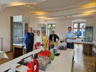 Die Jury des 2. Glaspreises bei der Bewertung der eingereichten Glasobjekte am 27. Mai.