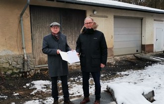 Landrat Michael Köberle hat dem Hadamarer Bürgermeister Michael Ruoff einen Förderbescheid aus der Säule B des Zukunftsfonds übergeben. Mit 28.679 Euro fördert der Landkreis Limburg-Weilburg die Herstellung von Hofflächen und eines Hallentors am Bauhof in Hadamar.
