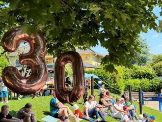 Eine Kindertagesstätte kann unter ungewöhnlichen Umständen auch an einem Samstag für alle offen sein. Ein ganz besonderer Anlass zum Betreten der Kita war am Samstag, 08. Juni. Die Erzieherinnen und Erzieher feierten gemeinsam mit den Kindern, Eltern, Großeltern und Wegbegleiterinnen und Wegbegleitern der Einrichtung das 30-jährige Bestehen der Kindertagesstätte. Bei herrlichem Wetter folgten viele Menschen der von der Einrichtungsleiterin Maria Saygili ausgesprochenen Einladung.