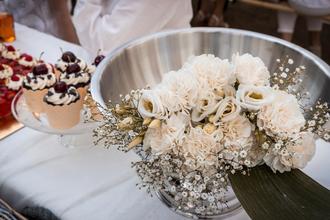Passend zum Dresscode Weiß wurden die Tische mit weißen Tischdecken eingedeckt und konnten nach Belieben individuell geschmückt werden.