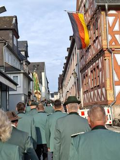 Zum Auftakt der Jubiläumsfeierlichkeiten am 14.06.2025 zog der Verein mit wehenden Fahnen am frühen Abend zur Hubertusmesse in der Stadtkirche ein. Im Anschluss an den Gottesdienst folgte der große Festzug durch die Hadamarer Innenstadt, welcher die Stadthalle zum Ziel hatte. Denn dort kam es dann zum eigentlichen Festakt unter der Schirmherrschaft von Thomas Weikert, Präsident des Deutschen Olympischen Sportbundes und Vorsitzender des Sportkreises Limburg-Weilburg.
