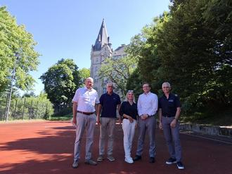 V. l. n. r.: Bürgermeister Michael Ruoff, Ordnungsamtsleiter Peter Wilhelmy, Stadträtin und Jugenddezernentin Silke Arnold, Diözesanbaudirektor Stefan Muth und Klaus Steinebach von der Stadt Hadamar
