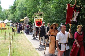 Zuvor hatten sich die teilnehmenden Schausteller am Elbbachufer zu einem Festumzug aufgestellt und im Anschluss Einzug in das Schlossgelände gehalten.