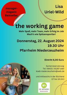 In "the working game" zeigen die Autoren Lisa Uriel-Wild und Felix Wild, wie die Erfolgsgeheimnisse von Spitzensportlern und bekannten Persönlichkeiten aus der Geschäftswelt auf unser tägliches Leben übertragen werden können. Das Buch enthält inspirierende Geschichten von Sportstars und erfolgreichen Unternehmern, interessante Interviews und praktische Tipps, die jeder anwenden kann – egal, ob im Beruf, im Ehrenamt oder im Privatleben.