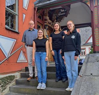 Mit einem spontanen Besuch im Hadamarer Rathaus, überraschten die Mannebacher Kirmesmädchen Gwenn Ziric, Emelie Brötz und Dana Schallenberg Bürgermeister Michael Ruoff. Hintergrund ihres Besuchs war die Ankündigung der anstehenden Mannebacher Kirmes, die vom 5. bis 8. September 2025 stattfindet sowie die Klärung einiger organisatorischer Fragen. Denn für den traditionellen Kirmesbaum gilt es eine passende Spitze aus dem Stadtwald sowie einen neuen passenden Stamm zu besorgen. Auch baten die Kirmesmädchen um die Mithilfe des städtischen Bauhofes beim Baumstellen und erhoffen sich die Unterstützung des Bürgermeisters bei der Organisation.