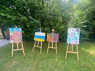 Am Freitag stand ein Malkurs auf dem Programm. Die kleinen Künstler malten wie die Profis an einer Staffelei und lebten sich kreativ aus. Für die Kinder, die eine Pause vom Malen brauchten, gab es natürlich auch eine kreative Alternative. Es bestand die Möglichkeit Armbänder und Schlüsselanhänger anzufertigen.