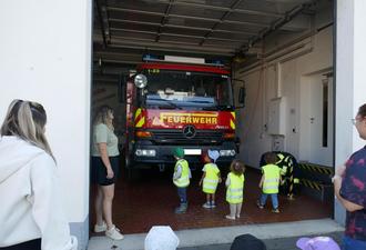 Am Freitag, den 18. Juli besuchten einige Kinder der Kinderkrippe Villa Musica, eine Einrichtung des Lahn-Kinderkrippen e. V., die Freiwillige Feuerwehr Hadamar. Sie erhielten spannende Einblicke in die Feuerwache, wobei sie die Umkleidekabine und die großen Einsatzfahrzeuge besonders genau unter die Lupe nahmen. Die Kleinen waren begeistert, als sie sich selbst in ein Fahrzeug setzen und einen Feuerwehr-Helm anprobieren durften. Bei diesem Ausflug hatten nicht nur die Kinder, sondern auch das begleitende Team aus der Villa Musica großen Spaß, sodass eine Wiederholung bereits angepeilt wird. Die Kinderkrippe dankt der Freiwilligen Feuerwehr Hadamar herzlich für diese Möglichkeit!