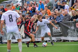 Die Gäste ließen sich nicht lange bitten und eröffneten schon nach 10 Minuten den Torreigen. Der viel umjubelte Ausgleich kurz darauf versprach ein spannendes Auf - und Ab auf dem Spielfeld. Schnell aber mussten die Gastgeber feststellen, dass die Ex-Profis um Charly Körbel vielleicht an Tempo - nicht aber Können verloren haben. Erwin Skela zauberte wie zu alten Zeiten und Alex Meier brillierte mit gescheiten Pässen, die den Gastgebern ein über das andere Mal in echte Schwierigkeiten brachten. Sehr ansehnlich entwickelte sich ein unterhaltsames Spiel, sehr zur Freude der Zuschauer.
