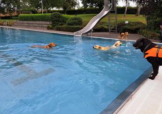 Was für einen Spaß hatten die Vierbeiner gemeinsam mit ihren Herrchen und Frauchen am ersten Hundebadetag zum Saisonabschluss im Hadamarer Freibad. Auch wenn sich nicht alle ins kühle Nass vortrauten, genossen andere diese einmalige Gelegenheit, im 22 Grad warmen Becken, umso mehr. Denn es ist gar nicht mehr so einfach den Lieblingen eine solche Abkühlung zu ermöglichen‘, tauschen sich viele untereinander aus. So waren viele, der rund 30 Gäste auch von weit hergekommen, um ihren Hunden beim ausgiebigen Plantschen zuzusehen.