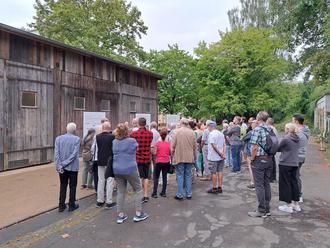 Weiter ging der Tag mit vier aufschlussreichen Führungen. Um 13 Uhr nahm die wissenschaftliche Mitarbeiterin Franziska Schmidt, die rund 40 Interessierten mit zu einem baugeschichtlichen Rundgang in und um das historische Gebäude der Gedenkstätte Hadamar. Dabei erläuterte Sie die noch heute sichtbaren Spuren und Merkmale der einstigen Tötungsanstalt, die Bedeutung der Busgarage, welche Funktionen welche Räume des Gebäudes hatten und das ausgeklügelte Logistiksystem zur Geheimhaltung der mörderischen NS-Euthanasie, welcher alleine in Hadamar fast 15.000 Menschen zum Opfer fielen. Kostenlose öffentliche Führungen für Einzelpersonen finden immer am ersten und dritten Sonntag im Monat um 14:30 Uhr in der Gedenkstätte statt.