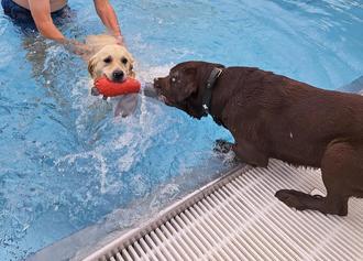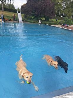 Vom Beckenrand springen ist ausdrücklich erlaubt: Am letzten Badetag durften Hunde wieder ins Freibad Hadamar
