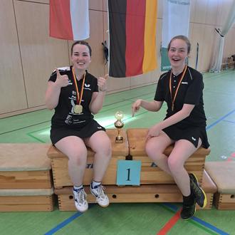 Welch ein grandioser Erfolg für Tiziana Schuh von den TTF Oberzeuzheim bei den diesjährigen Deutschen Meisterschaften der Leistungsklasse im hessischen Königstein: In der höchsten Konkurrenz, den Damen A, gewann sie zusammen mit Céline Kreiling vom TTC Wißmar die Goldmedaille im Doppel und darf sich somit Deutsche Meisterin nennen. In einem an Spannung kaum zu überbietenden Finale gegen die topgesetzten Bayerinnen Brüchert/Dietrich (TuS Fürstenfeldbruck/DJK SB Regensburg) galt es, einen 0:2-Satz-Rückstand (9:11, 6:11) aufzuholen. Dies gelang auf beeindruckende Art und Weise: Mit 11:8, 11:4 und 11:8 wurde das Mach gedreht.