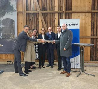 Festakt zur Neugestaltung der Gedenkstätte Hadamar und ihrer Dauerausstellung am 25. September 2025 mit einem symbolischer Akt zum offiziellen Baubeginn (v. l.): Dr. Robin Mishra (Leiter Abteilung „Erinnerungskultur“ beim Beauftragten der Bundesregierung für Kultur und Medien), Franziska Kiermeier (Direktorin Hessische Landeszentrale für politische Bildung), LWV-Landesdirektorin Susanne Simmler, Landtagspräsidentin Astrid Wallmann, Gedenkstätten-Leiter Prof. Dr. Jan Erik Schulte, Dimitris Michalakelis (Architekt, zuständig für die planerische Entwicklung, Architekturbüro Ritz&Losacker) und Bürgermeister Michael Ruoff verschlossen eine Zeitkapsel für das Fundament des künftigen Gedenkstätten-Eingangsbereichs. (Vollständiger Bericht siehe S. 2).