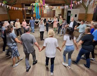Die traditionellen Volkstänze (Paar-/Kreis-/Reihentänze) aus verschiedenen europäischen Ländern werden vor dem Tanzen kurz erklärt und angeleitet.
