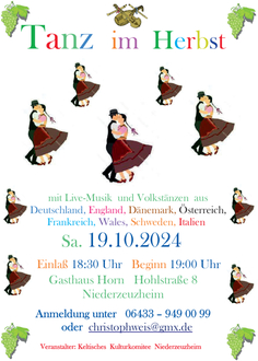 Wer gerne mehr Informationen haben möchte und mittanzen will, meldet sich bitte mit einer kurzen Mail: christophweis@gmx.de oder unter Tel: 06433-9490099 an. Einlaß ist ab 18:30 Uhr. Das Keltische Kulturkomitee freut sich wieder auf viele Tanzbegeisterte.
