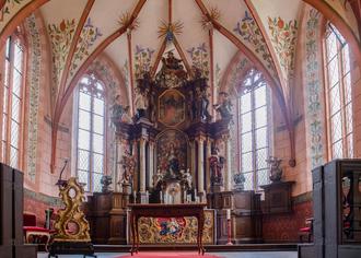 Der Hochaltar der Liebfrauenkirche aus Hadamarer Barock. Öffnungszeiten April bis Ende Oktober, immer sonntags 15-16 Uhr.