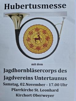Die Hubertusmesse wird an diesem Tag von dem Jagdhornbläsercorps des Jagdvereins Untertaunus musikalisch mitgestaltet.