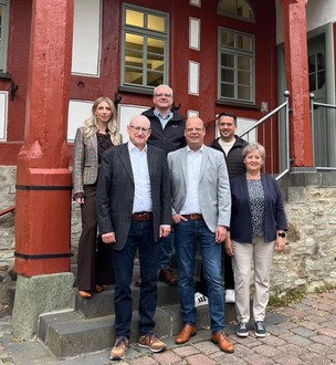 Entwickeln die App stetig weiter (v.l.): Olga Herb (Stadtmarketing Hadamar), Bürgermeister Michael Ruoff (Hadamar), Dominik Müller (Webfacemedia), Bürgermeister Frank Groos (Brechen) Jonas Partsch (Webfacemedia) und Bürgermeisterin Scheu-Menzer (Hünfelden).
