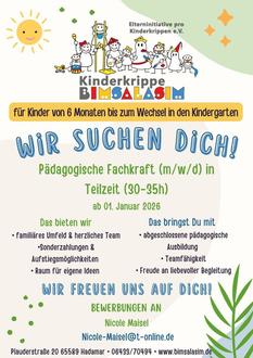 Kinderkrippe Krabbelstube "Bimsalasim" Niederhadamar - Wir suchen Dich!