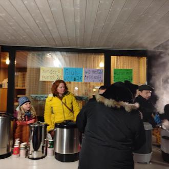 Einige Mitglieder des Ortsausschusses des Kirchortes St. Peter Niederzeuzheim und freiwillige Helfer hatten darüber hinaus ein Angebot an Glühwein, Punsch und Snacks vorbereitet, das von den vielen Besuchern auch wegen der niedrigen Außentemperaturen zum Aufwärmen dankend angenommen wurde. Der Erlös des Verkaufs sollte auch dieses Mal wieder einer guten Sache zugutekommen. Nachdem in 2023 ein Projekt der Pfarrei in Sambia unterstützt wurde, entschied man sich in 2024 für das lokale "U3-Kletterspielgerät-Projekt" des Fördervereins des Kindergartens Niederzeuzheim und unterstützte dieses Ende des Jahres mit dem tollen Erlös von 400 €! Der Förderverein bedankte sich recht herzlich dafür.