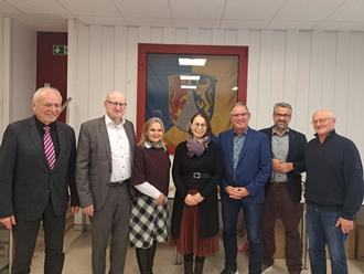 Besiegeln die Anpassung im Betreibervertrag (v.l.): Bernhard Pott, Bürgermeister Michael Ruoff, Silke Arnold, Annemarie Lobenhofer, Bürgermeister Andreas Höfner, Bürgermeister Matthias Schmidt und Henry Klinger