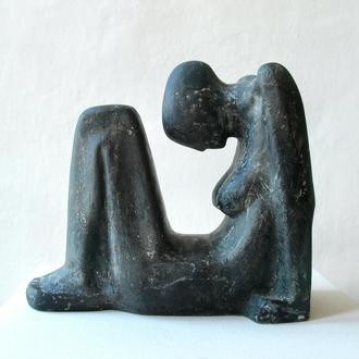 Die Sitzende: dunkelblaue Glasplastik von Josef Welzel.