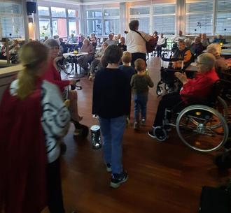 Kinder des Kinderchores Hadamar, unterstützt von einigen Kindern aus den KItas besuchten kurz nach St.Martin die Bewohnerinnen und Bewohner der AWO Hadamar.So manche Augen strahlten, als die Kinder durch die Reihen des Speisesaals gingen und vom Mantelteilen sangen und spielten.Die Kinder wiederum staunten, dass es sogar Zuhörer mit fast 100 Jahren gab!
