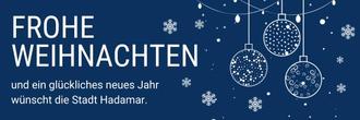 Die Mitarbeitenden der Stadt Hadamar wünschen Ihnen und Ihren Familien ein glückliches Weihnachtsfest und alles Gute für das neue Jahr.