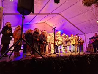 Die Schlossweihnacht begann mit dem traditionellen Weihnachtsliedersingen der Kinder der Herzenbergschule und der feierlichen Eröffnung durch Bürgermeister Michael Ruoff. Rebecca Kollang und Daniel Kleiter verzauberten, wie jedes Jahr, die Besucher mit Gesang und Klavier.