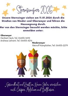 In Ober- und Niederweyer findet die Sternsingeraktion am Sonntag 11.01.2026 nach dem Aussendungsgottesdienst statt.