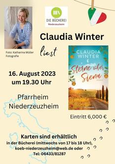Claudia Winter liest am 16. August 2023 um 19.30 Uhr im Pfarrheim Niederzeuzheim