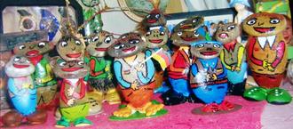 Unser Stein: Noch ist er grau und lächelt nicht, doch bald bekommt er ein Gesicht. Und wirkt er farblos und bescheiden, so werden wir ihn bunt bekleiden.