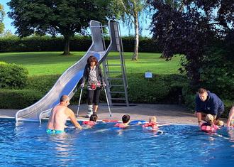 Ja, wärmere Temperaturen und Sonnenschein hätten wir uns alle für die Kinder der Schwimmkurse im Hadamarer Freibad gewünscht“, sagt die Schwimmkurs-Ideengeberin und 1. Stadträtin Susanne Langel. Eigentlich sollte der Kurs bereits am 25.07. starten, nun ging es aber wetterbedingt doch erst am 01.08. los. Dank der Solarbeheizung des Bades ist aber wenigstens die Wassertemperatur 4 Grad wärmer als die Außentemperatur und eines ist entscheidend – die so wichtigen und dringend benötigten Schwimmkurse finden statt. Das betont auch die 1. Stadträtin bei ihrem Besuch:,, Wir möchten, dass die Kids mit diesem Angebot schnellstmöglich wenigstens die Grundlagen des Seepferdchens erlernen und wer dann noch Lust hat kann über die DLRG Ortsgruppe Hadamar noch das Bronzeabzeichen machen.“ Für die Überbrückungszeit bis zum Start der Kurse gab es von den Schwimmlehrern schon mal WhatsApp-Videos, um die Schwimmbewegungen zu Hause vorzuüben.