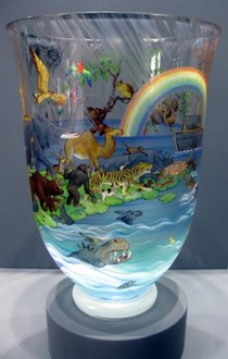 „Sintflut“, die bemalte Vase aus farblosem Kristallglas von Alexander Pfohl aus dem Jahre 1945