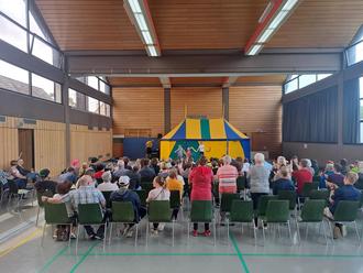Der Zirkusworkshop fand seinen Höhepunkt mit dem Auftritt der Kinder in der Manege. Es gab ein sehr großes Publikum, bestehend aus den Eltern und Großeltern der kleinen Zirkuskünstler und -künstlerinnen. Somit endete der Workshop auch im Jahr 2023 mit einem vollen Erfolg und wir freuen uns bereits auf das nächste Jahr, wenn es wieder heißt: Manege frei!