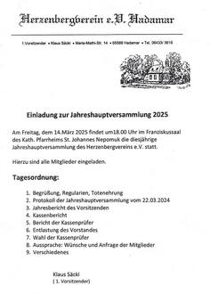 Jahreshauptversammlung Herzenbergverein e.V.