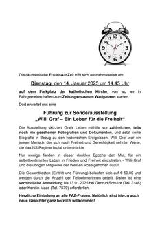 | 16.00 – 17.00 Uhr | Konfirmandenunterricht in Schwalbach |