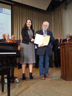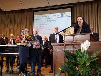 Im Anschluss daran zeigte der 1. Vorsitzende des MGV Dr. Christian Neu in seiner Laudatio einen chronologischen Ablauf über den langen Zeitraum der musikalischen Chorleitung und des Dirigates von Adolph Seidel auf und hob dessen professionelle und von hoher Kompetenz geprägte Führung hervor. Insbesondere hat er sich über all‘ die Jahre Respekt und Wertschätzung der Chorsänger erworben; nicht zuletzt sind vielfache freundschaftliche Beziehungen entstanden, die hoffentlich auch zukünftig durch Besuche von Adolph und seiner Ehefrau Carola gepflegt werden können und die Veranstaltungen des MGV durch ihre Anwesenheit bereichern werden.