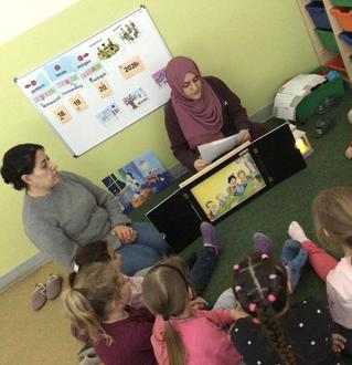 In der Grünen Gruppe wurde eine kindgerechte Geschichte zum Ramadan gelesen und gemeinsam besprochen. Anschließend durften die Kinder eine Dattel probieren – traditionell wird mit ihr das Fasten gebrochen. So konnten sie die Bedeutung dieses Monats auf anschauliche Weise kennenlernen.
