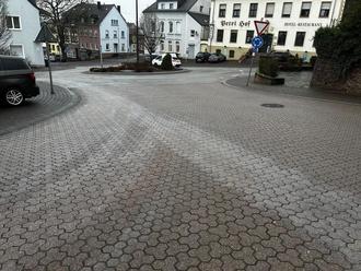Nach Erkundung durch den Einsatzleiter konnte eine Verfärbung der Straße festgestellt werden. Hierbei handelte es sich um eine Benzin-/Dieselspur welche bereits großflächig verfahren wurde.