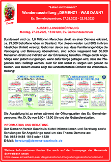 Demenz - Was dann? Statt. Die Ausstellung ist während der Öffnungszeiten und der Gottesdienstzeiten zu sehen.