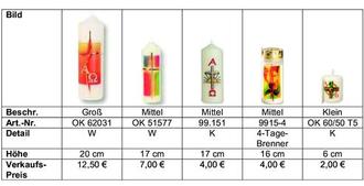 Folgende Kerzen stehen dieses Jahr zur Auswahl: