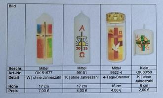 Der Verkauf der Osterkerzen 2026 wird an folgenden Terminen stattfinden: