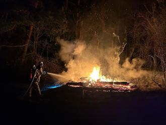 Nach Beendigung der Löschmaßnahmen, Brandlast auseinandergenommen und mittels Schaumteppich bedeckt. Kontrolle mittels Wärmebildkamera.