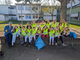 Die FGTS nahm mit 16 Kindern aus den Klassen 1 und 2 teil. Gemeinsam sammelten sie rund um den Schulhof sowie am Sportplatz Müll.