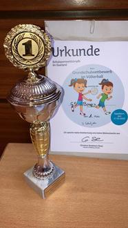 Am 17.03.23 hatten wir ein Völkerballturnier in Eppelborn. Einige Eltern sind mit Privatautos nach Eppelborn zur Hellberghalle gefahren. Dann haben wir uns in der Halle getroffen und umgezogen. Wir waren so aufgeregt, weil wir ein halbes Jahr für das Turnier trainiert hatten. Wir haben uns so angestrengt, dass wir direkt die ersten drei Spiele gewonnen haben. Fast alle haben geschwitzt. Als das Turnier zu Ende war, gingen wir mit unserer Lehrerin Frau Brauch zur Siegerehrung. Alle 18 teilnehmenden Mannschaften setzten sich in Reihen nebeneinander. Die 4. Klasse unserer Schule landete auf dem 6. Platz. Als dann die 3. Klassen dran waren, dachten wir, dass wir keinen der vorderen Plätze erreicht hätten. Doch als der 1. Platz aufgerufen wurde, sagte die Leiterin: „Platz 1 und damit Saarlandmeister ist die Grundschule Bous!“ Alle freuten sich richtig. Dann sollten wir zu der Leiterin gehen und den Pokal und die Urkunden holen. Danach wurde ein Foto gemacht. Außerdem bekamen wir Riegel und Saft. Die Eltern, die mitgekommen waren, freuten sich für uns. Und unsere Lehrerin Frau Brauch schrieb direkt unseren Sieg in die Lehrer- und Elterngruppe. Das war ein toller Tag!