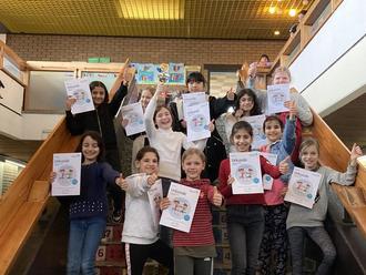 Gleich am nächsten Schultag gab es im Foyer der Schule eine Siegerehrung vor allen Kindern und wir bekamen viel Applaus.