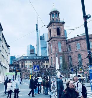 Nach einer kurzen Mittagspause ging es mit einer zweistündigen Stadtführung mitten durch das historische Zentrum Frankfurts weiter. Vermittelt wurde viel Wissenswertes über die Geschichte Frankfurts. Außerdem bestand die Möglichkeit sich bedeutende Sehenswürdigkeiten wie beispielsweise die Paulskirche genauer anzuschauen und zu bestaunen.