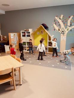 Nach der Geschichte wurde es spannend für die Kinder: Der Osterhase war da! Heimlich hatte er in den Gruppen kleine Überraschungen versteckt. Mit leuchtenden Augen und viel Freude machten sich die Kinder auf die Suche und fanden liebevoll gefüllte kleine Geschenke.