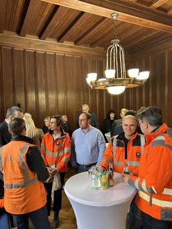Am heutigen Donnerstag fiel der symbolische Startschuss für die Hauptbaumaßnahmen in Bous. Sie umfassen den Einbau von drei neuen Aufzugsanlagen, die den Mittelbahnsteig künftig stufenlos erreichbar machen. Für einen verbesserten Zugang sorgen in Zukunft auch die neuen Treppenanlangen an den Zugängen sowie am Bahnsteig. Die Personenunterführung wird nicht nur erneuert, sondern auch verlängert, um eine zusätzliche Zuwegung zur Gemeindeseite Wadgassen und somit zum Stahlwerk Bous zu schaffen. Der Rückbau des bestehenden Bauwerks ist bereits im Gange, ebenso wie der Aufbau einer provisorischen Überführung, die den Zugang zum Bahnsteig während der Bauzeit sicherstellt.